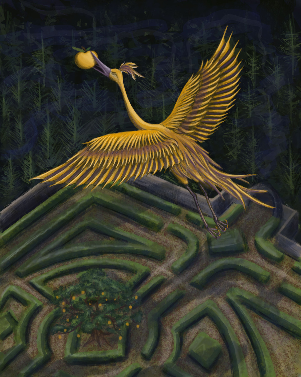 Me acosté en el pasto a su lado y vislumbré el cielo estrellado entre sus hojas. En una de sus ramas, un pájaro de plumas de oro se sacudía para levantar un vuelo majestuoso. Un manto de flores comenzó a brotar a mi alrededor y cubrirme, dándome cobijo de la brisa estival que escapaba los confines del tiempo y el espacio. Ya no estaba donde siempre había querido estar. Estaba donde quería estar hoy.